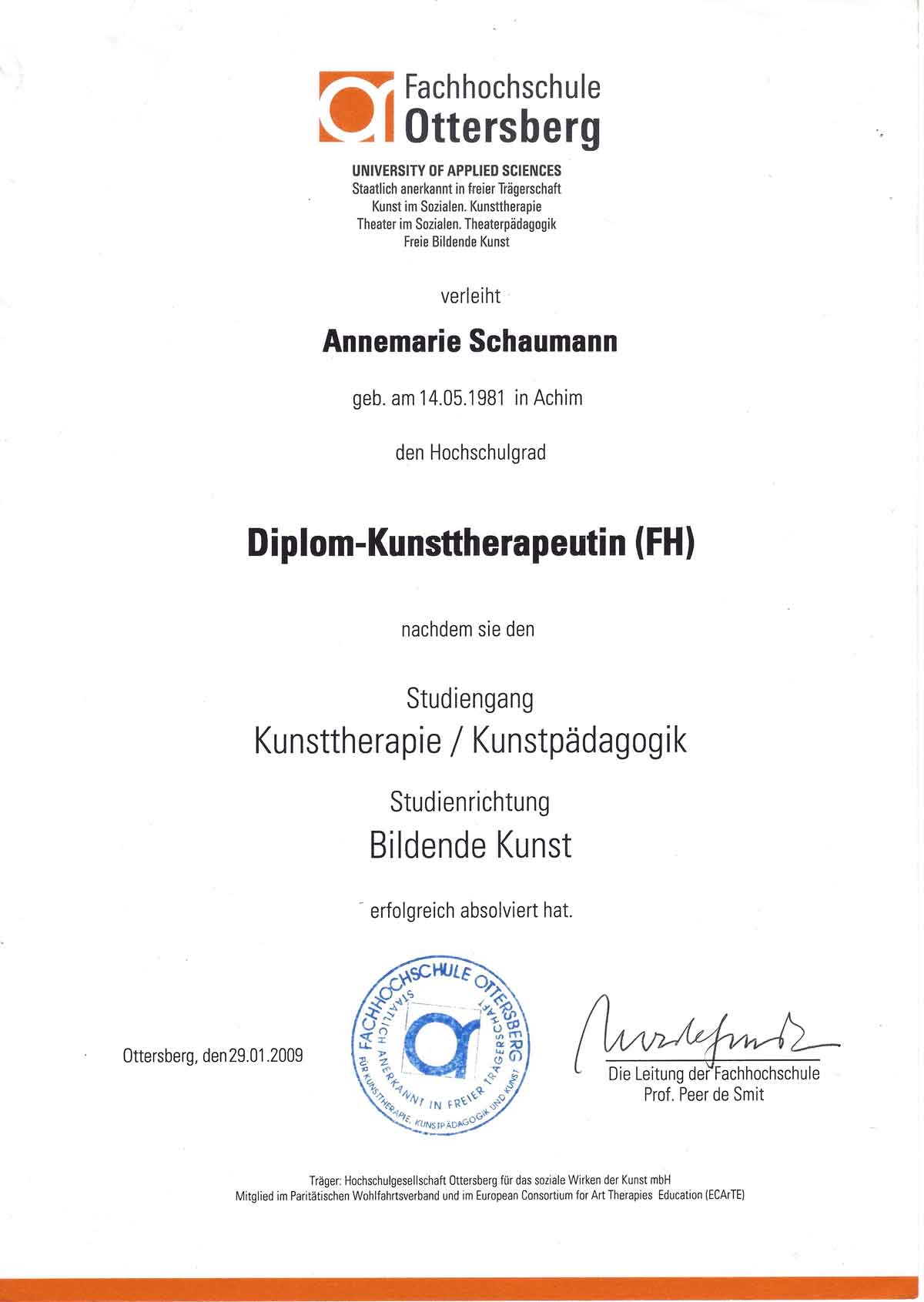 Abschluss: Diplom Kunsttherapeutin/Pädagogin